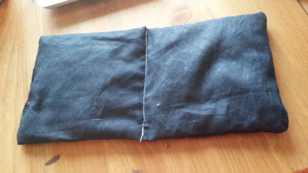 Donc on fait une première housse qu’on vient garnir de noyaux de cerise. J’ai été assez light pour la première, n’hésitez pas à remplir davantage. J’ai du mettre 100g de noyaux… Du coup elle chauffe pas beaucoup…