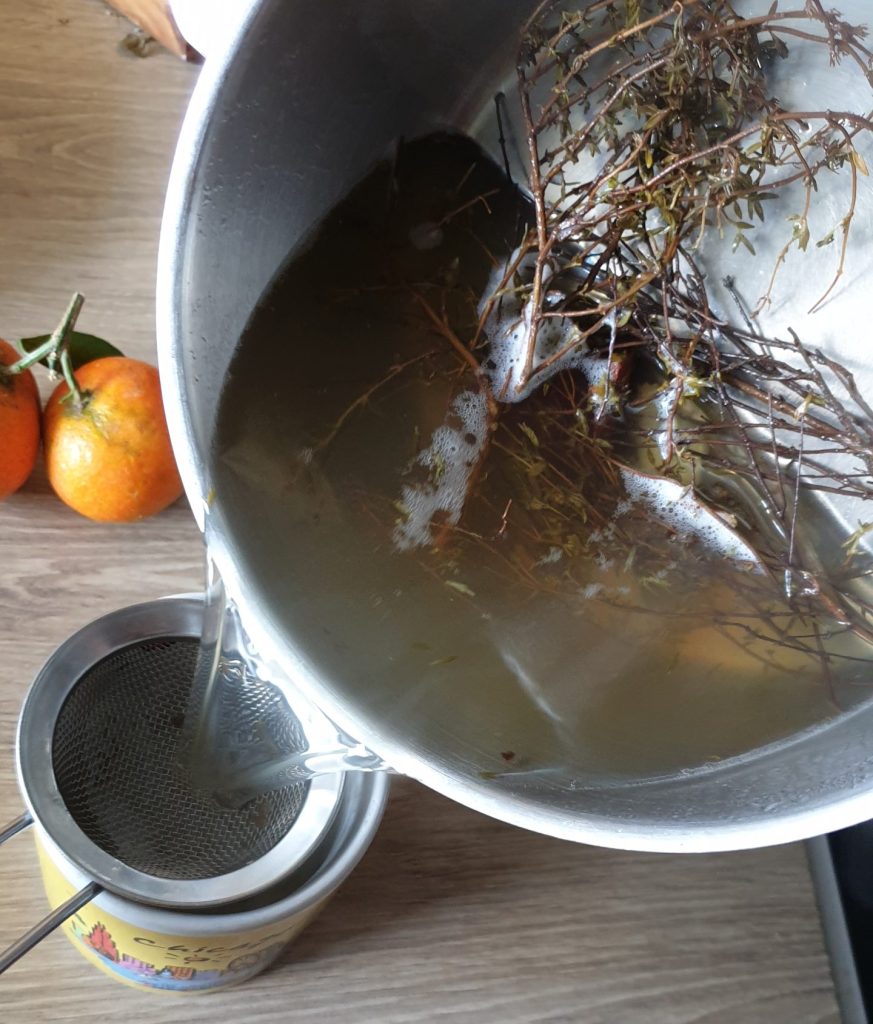 Je laisse infuser 10 min avec une assiette sur la casserole pour préserver les huiles essentielles contenues dans l’infusion.