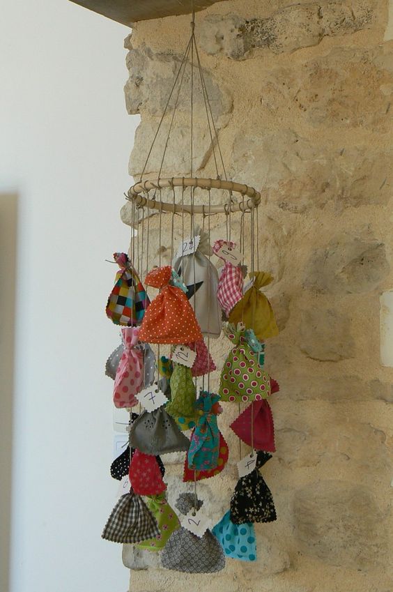 Personnellement je n’ai pas de souvenirs de calendrier de l’avent avant mes… 15-16 ans… Epoque où ma maman a confectionné un calendrier avec un beau tissu de Noël et 25 petits sachets numérotés.