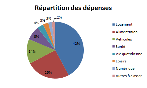 - Logement (42% : loyer, gaz, eau, électricité)