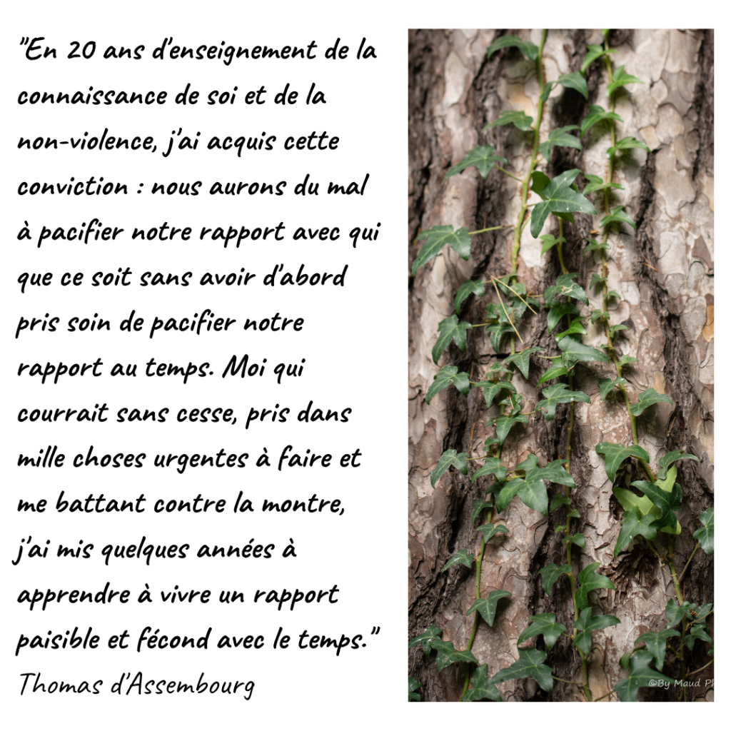 Je trouve que cet aspect nécessairement utilitaire du temps vient en résonnance une pression que l’on s’ajoute : « si je prends du temps pour moi, il faut absolument que j’en retire un bénéfice immédiat ! » Et donc surajoute de la culpabilité quand ce bénéfice n’est pas là ou pas à la hauteur de l’espérance…