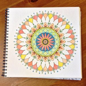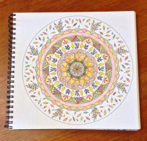 Elle a vraiment une touche très douce dans ses créations, que ce soient les mandalas, ou la papeterie en aquarelle. Elle a créé il y a quelques années un carnet de mandalas… un vrai régal pour les amatrices de coloriages que nous sommes ma 2e fille et moi… Malheureusement il n’est plus édité pour le moment…