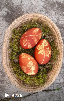 On peut également cuire des œufs durs en teintant la coquille avec l’empreinte d’une feuille.