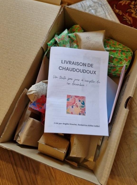 Bref depuis 2023 je propose une « box » calendrier de l’Avent que j’appelle « Livraison de chaudoudoux ».